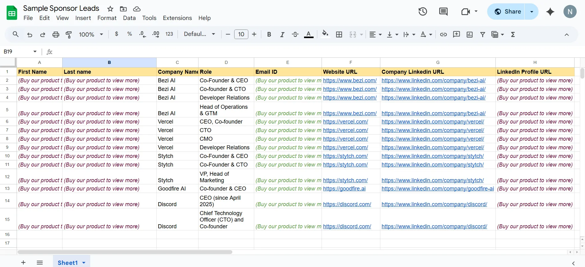 - π Outreach-ready spreadsheet β clean, structured, usable instantly